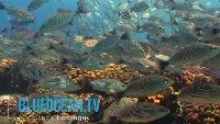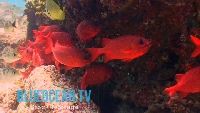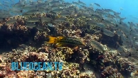 | schooling spottail grunts, Cortez damsel on coral reef |