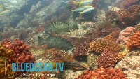 goatfish, leopard grouper, king angel on coral reef