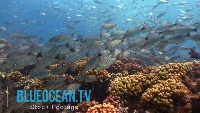 | schooling spottail grunts, Cortez damsel on coral reef |